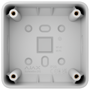 Ajax SurfaceBox [55] es una solución diseñada para la instalación segura y ordenada de los módulos LightCore y OutletCore del ecosistema Ajax. Permite montar estos dispositivos de forma externa en superficies donde no existe una caja de instalación empotrada, como paredes de hormigón, madera o materiales complejos, siempre en entornos interiores.