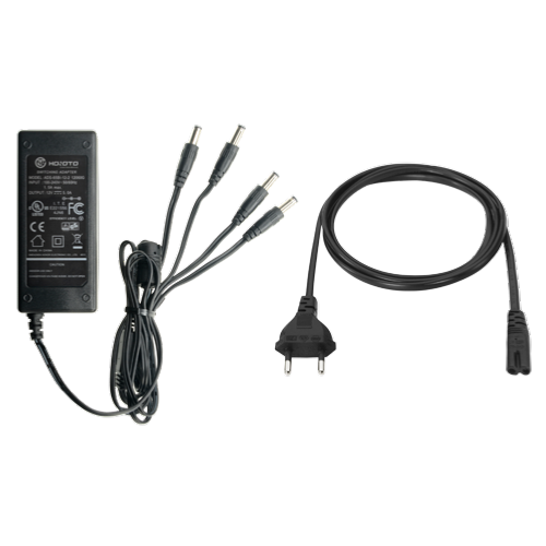 Se alimenta conectándolo directamente a la corriente alterna (AC 100/240 V) y proporciona alimentación contínua DC 12 V 5 A. Dispone de cuatro salidas con jack de alimentación estándar.